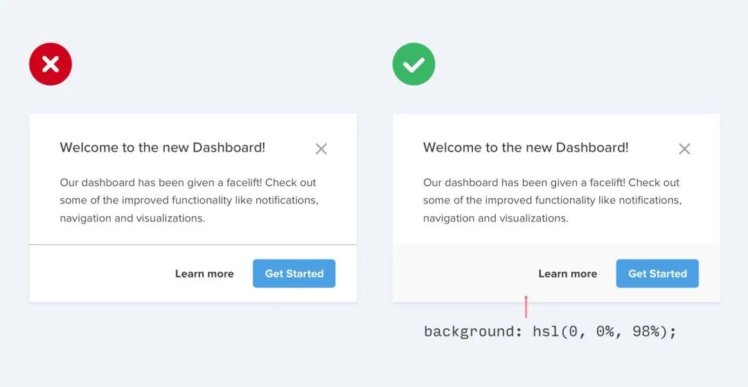 通常,相邻的元素背景只需要有微妙的差别就能够让人对他们进行区分。所以,你所需要做的就是在不同的区块采用不同的背景色,并且尝试删除边框,因为你根本不需要它。