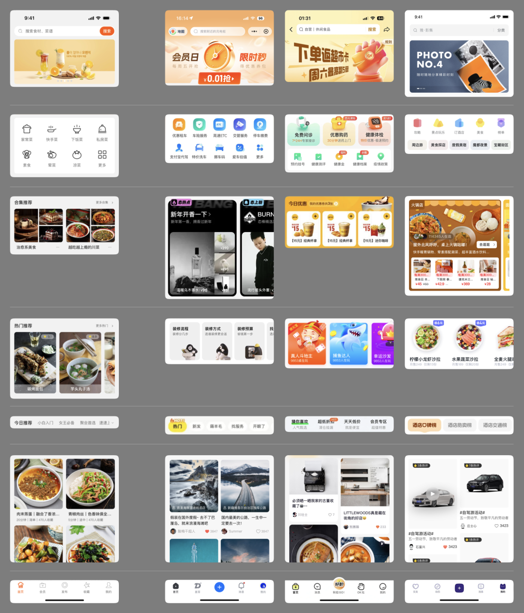 确定页面中包含的组件类型,并对不同组件做一个基本的认识,它是什么或类似什么。这一步非常重要,因为虽然有很多行业通用的标准组件类型,比如瓷片区、快速入口、动态卡片之类,但也有很多组件根本就没有明确的归类,你要自己给它做个大致的分类,才能在下一步有针对性的筛选相关的参考和案例。