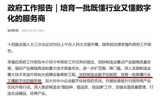 在2025年3月的政府工作报告中,明确提出要“培育一批既懂行业又懂数字化的服务商”,这一战略导向不仅为我国的数字经济发展指明了方向,也为各行各业的数字化转型提供了强有力的支撑。