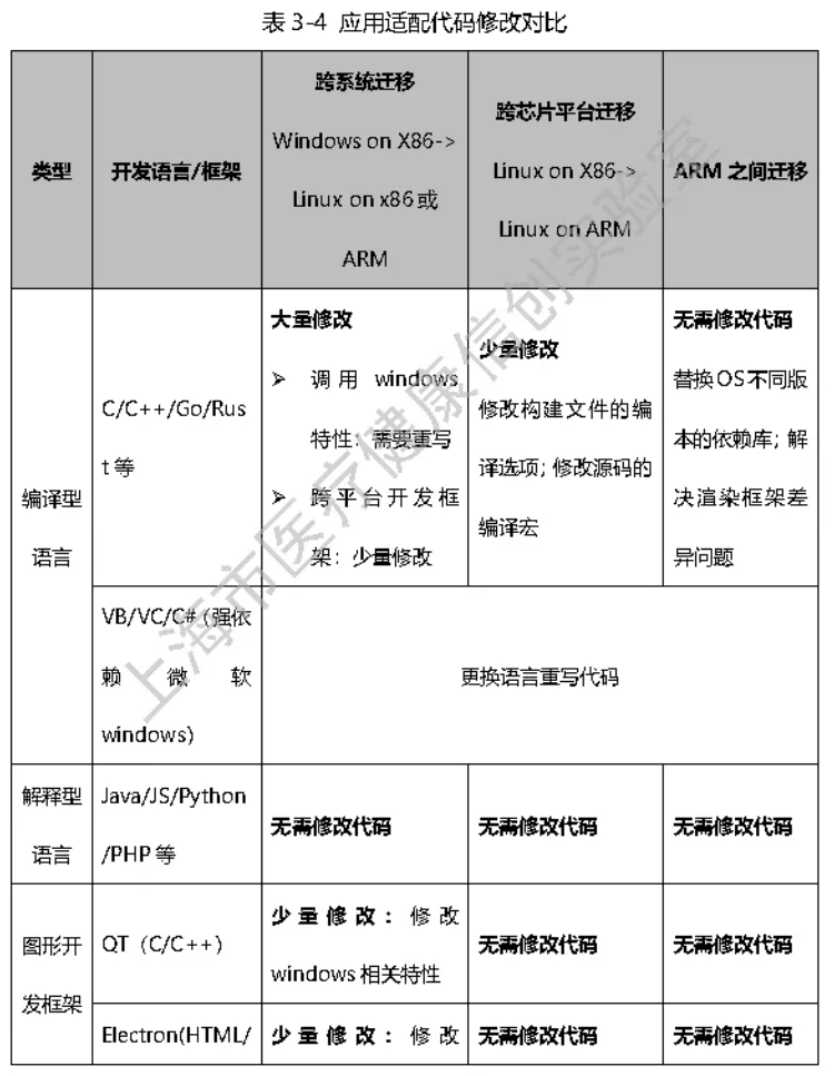 应用系统采用不同的开发语言和开发框架,迁移的模式和工作量会有差异,采用java 技术路线的应用系统具有更好的跨平台能力。
