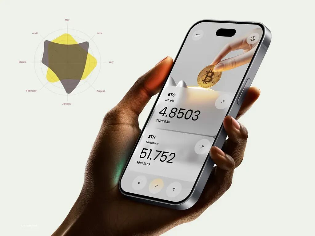 本期灵感作品来自Upnow Studio,这期移动端加密货币应用采用极简主义设计理念,通过清晰的信息层级与高效的可视化方案构建专业可信的金融工具体验。界面以白色背景为基底,搭配深灰文字形成高对比度的阅读舒适区,符合金融产品对数据精确性的核心诉求。
