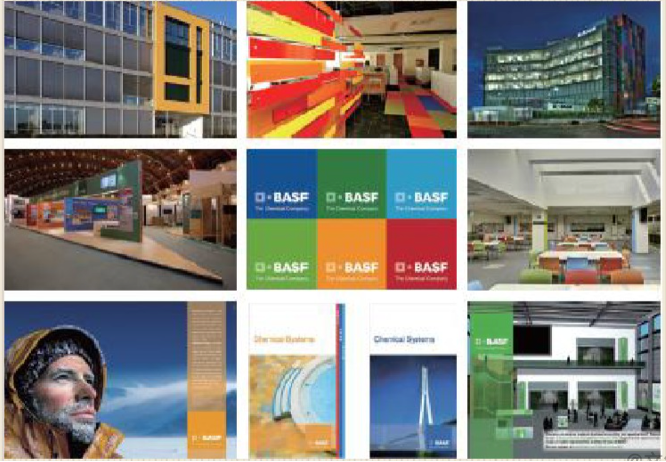 无论是独立企业品牌还是多元化品牌、产品矩阵对应的视觉识别体系,以品牌标志、标准字体、标准色彩、标准组合为核心,包含品牌在推广和使用过程中用到的所有应用项目,形成一套面向受众展示的整体形象,VIS在使用过程中,需要严格遵守使用规范,确保品牌形象的一致性和标准化,突出品牌本身的特点,同时与其他同类品牌进行区分。B端企业产品的应用图标场景相对较少,但在图标的数量反而可能会更多,有些业务非实体形象还需要模拟客观现实做创建,有些需要使用图标去表达不同业务间的关系,因此B端图标更讲究扩展性、关联性。例如巴斯夫(BASF)是化工企业,业务涉及多个领域分支,针对不同领域在品牌色彩识别细节做了不同的区分。
