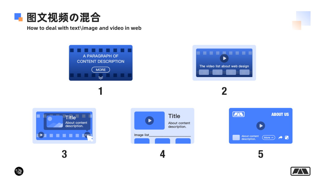 通常图文视频混合的情况很少见,视觉焦点不好控制,其中视频做背景是最好处理的,但内容信息不易过多: