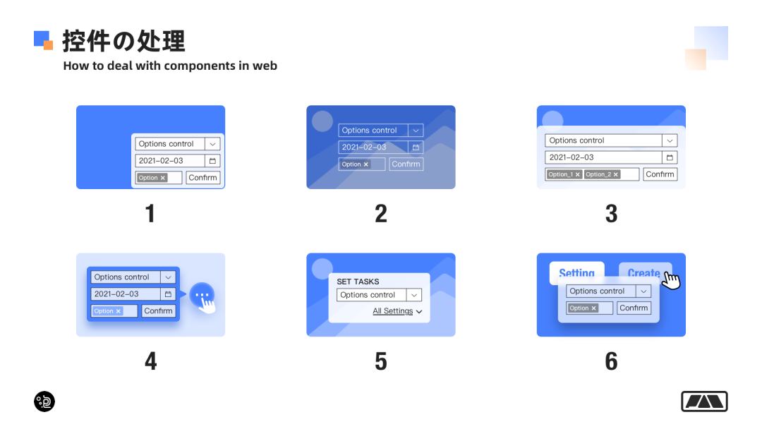 • 幽灵式控件,线性样式展示控件来兼容背景,并结合鼠标悬浮加强选择样式