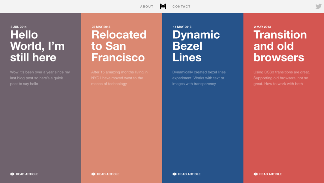 个别产品本身也是创意的一部分,有一些可能界面交互平平,但是却有着魔性或引人关注的产品内容。而这里整理了些比较典型的视觉展现形式和交互创意形式的案例,这些方式通常可以根据产品的定位与特色进行组合设计和开发呈现,让你的网站更富有创意和较好的视觉体验。1. 几何色块搭配文案