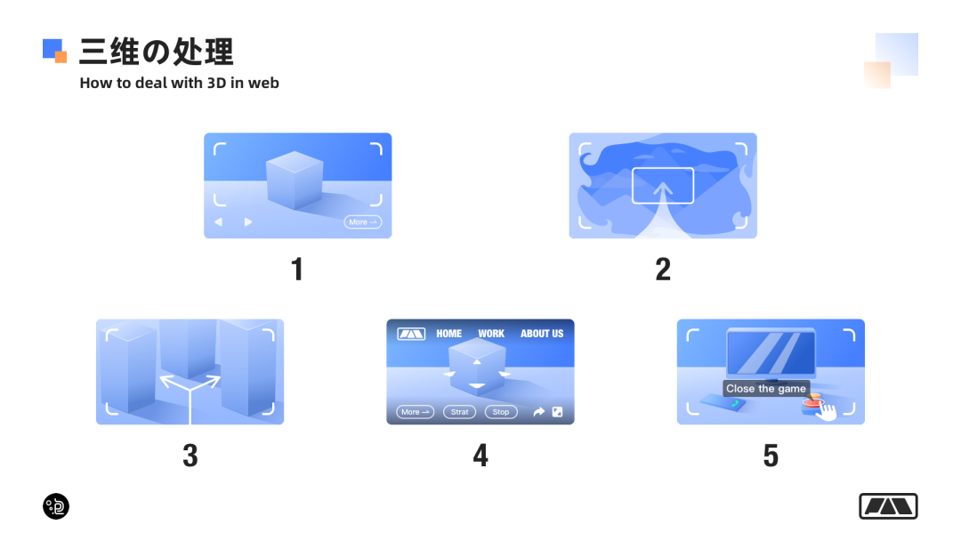 • 固定视角,有一个固定的场景和视角,可以通过交互使场景的内容发生变化,内容和操作可以轻量化