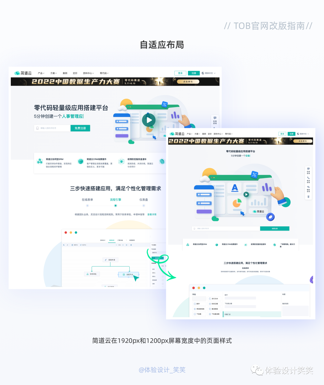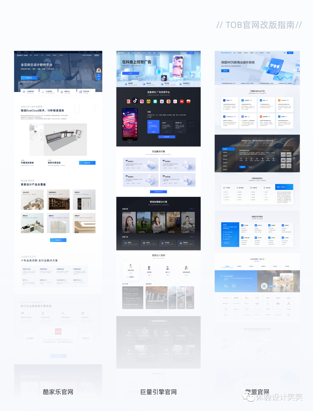 因为TO B企业的产品服务成本一般都较高,在对产品未知的线上平台,官网必须最大化透传品牌的行业知名度,业务稳定性等差异化优势,才能在用户心理增强购买的决心。官网的整个设计语言系统应包含品牌基因+设计规范+多场景应用。