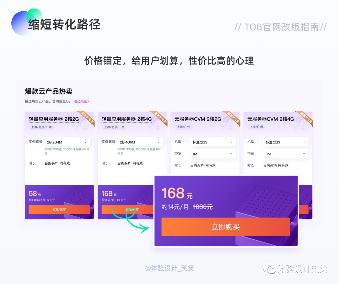 另外提高价格锚定也是一种快速让用户下单的方法,TO B的用户会考虑投入产出,性价比,购买是否划算,这时候如果给用户一个对比下有价格优势的产品,用户就会容易接受。