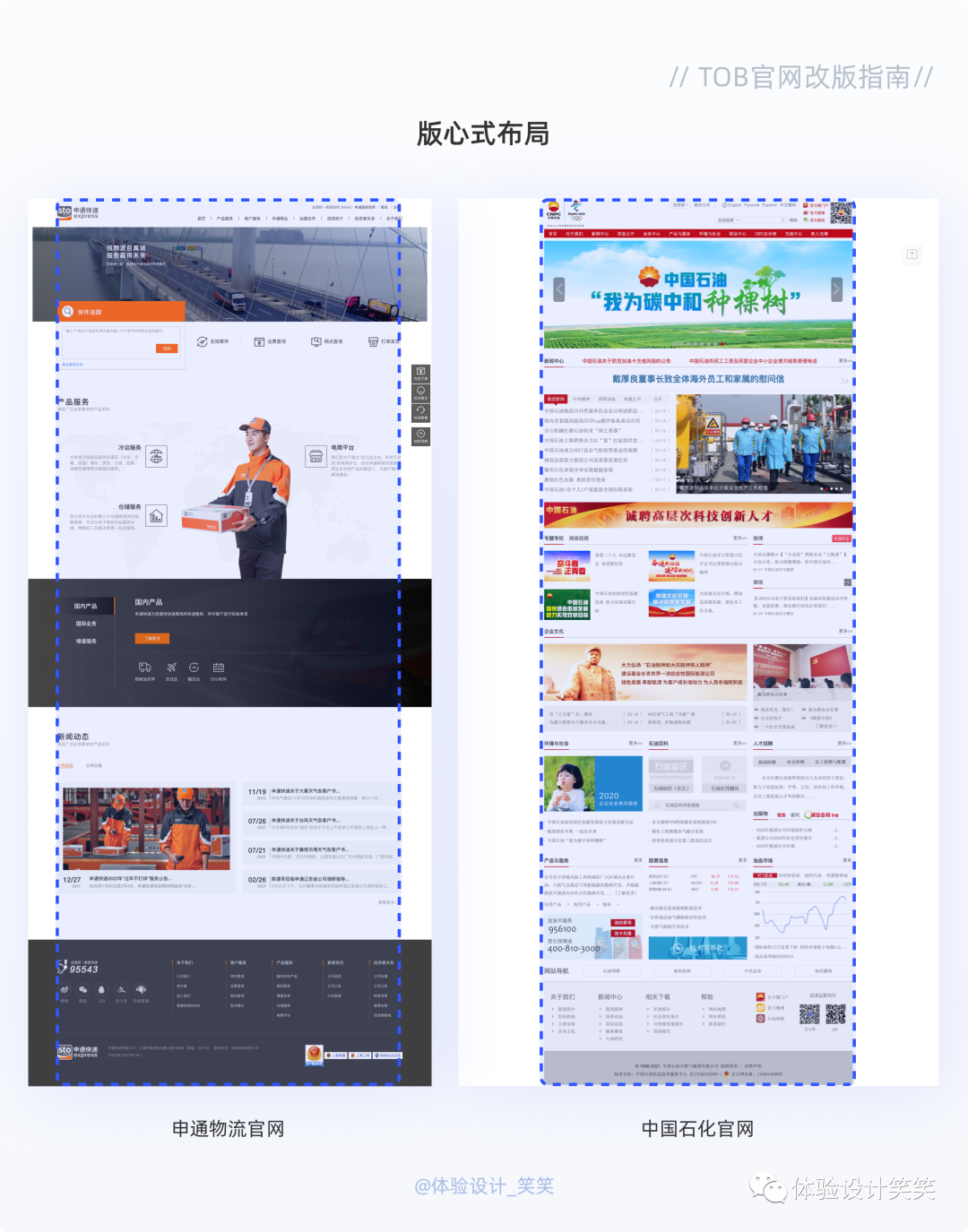 版心式布局就是页面的内容展示在页面的中央,首焦的视图可能会根据浏览器宽度进行适配,但是有效显示 区域是页面的中间区域,这种布局样式通常是基于前端实现考虑的,设计也只需出一套方案,虽然屏幕的利用率没有达到最高,但是不需要考虑适配的问题,也很少会出现兼容出错的情况,是很多传统企业、政府类网站常常采用的布局方式,也有很多企业出于自身情况,本身内容较精简,或开发资源的问题,也会采用这种布局。