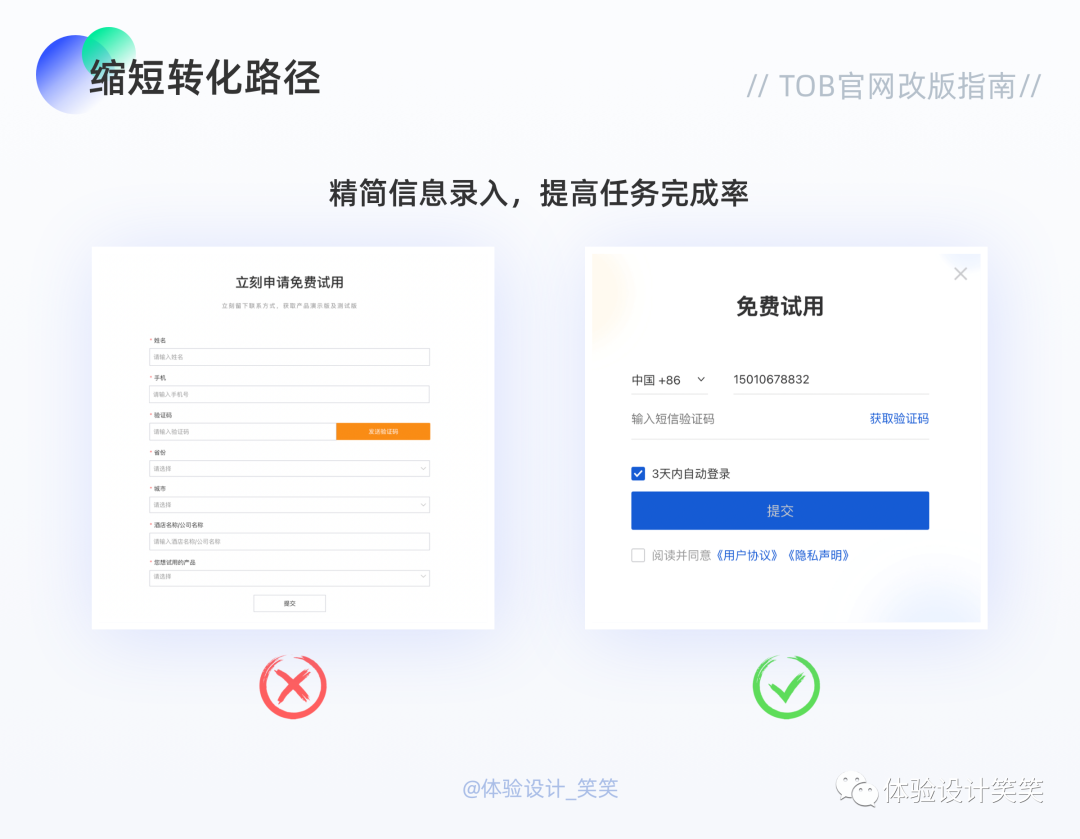(2)信息录入精简,需要用户录入信息填写的内容,尽量简单、清晰、高效,避免流程复杂、繁琐让用户在录入过程中感到枯燥乏味,容易流失。比如在留资的表单填写模块,尽量把无用、不重要的信息做删减,缩短用户填写的信息量和时长,提高用户填写任务的完成效率。