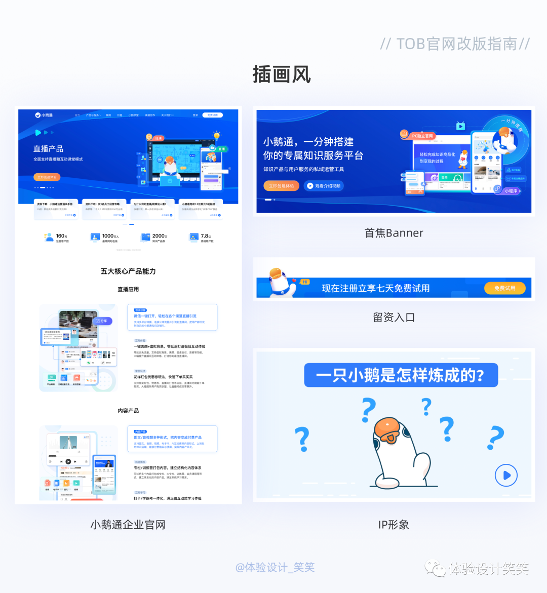 品牌升级并不是仓促的改改颜色、样式,优化一下logo之类,而是在充分理解业务、用户、品牌三方的背景之下,定义设计规则,落地设计元素。品牌升级策略有其独特性,本文中不作赘述,在此延展说一下设计规则应该如何落地。我们常见一些设计团队通用一套“清晰、简洁、高效”以不变应万变,但这仅仅是基础的原则,太过看宽泛,无法很好的应用落地在实际的项目中。设计原则应该贴近业务,真实有效,比如工业类实业的企业,应突出其智造、安全、有实力的产品定位,云平台的企业突出其专业、效率、先进,这才是更贴近业务的设计规则,然后根据精准定位的关键词进行设计延伸。避免同质化的设计元素:图标、配图、文字设计等,应结合品牌找到记忆点,让用户一眼能识别,留下深刻印象。比如IP形象的流行,衍生出的一套设计语言,带给用户很强的品牌记忆。