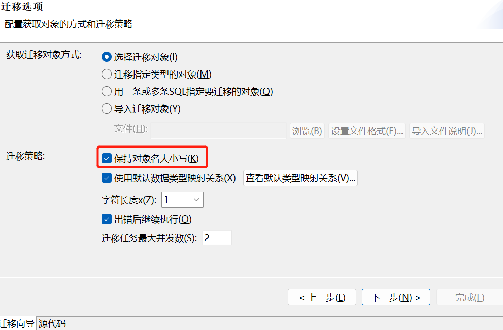 迁移对象方式及迁移策略中勾选“保持对象名大小写”。服务器配置高可以将迁移任务最大并发数调大。