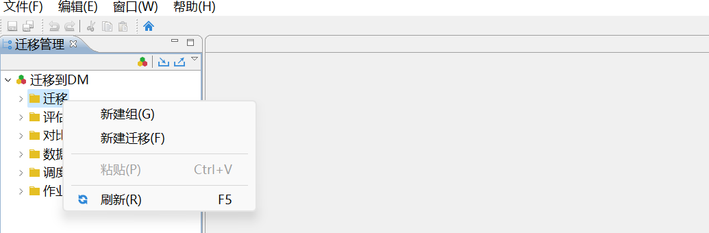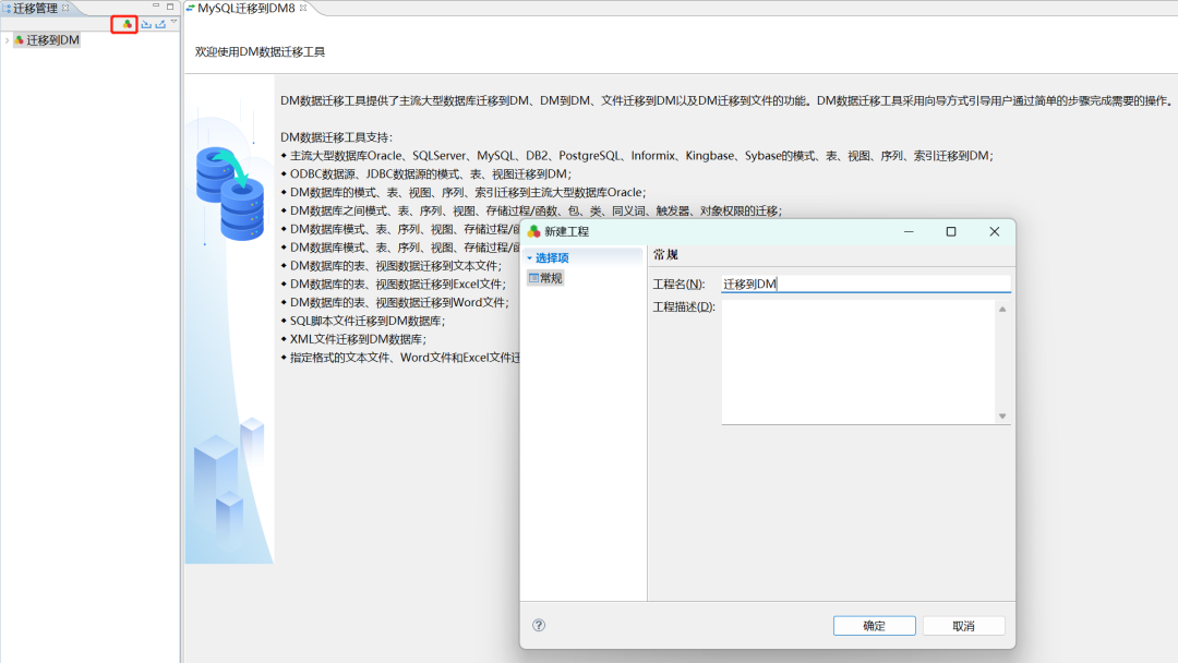 打开DMDTS迁移工具点击左上方的3色小图标新建迁移工程。