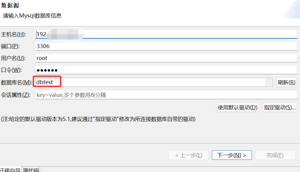 输入源端 MySQL 数据库相关登录信息,在“数据库名”选项中选择需要迁移的数据库。