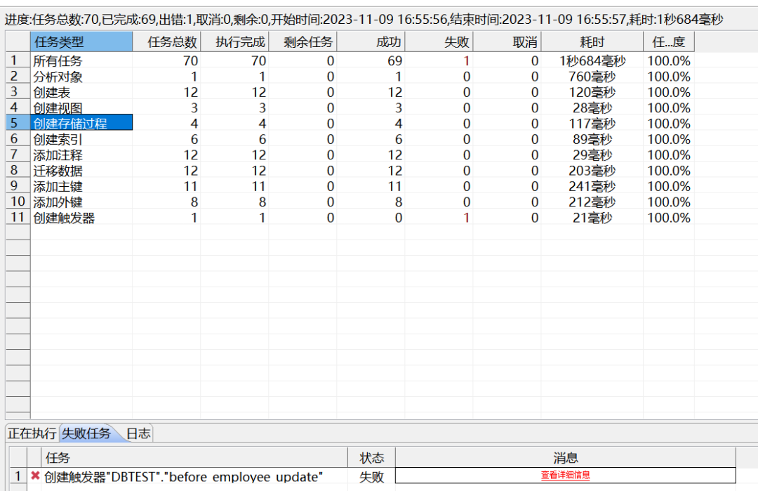 迁移完成后如有失败情况,通过点击“查看详细信息”可以查看详细的迁移错误信息,便于定位问题。