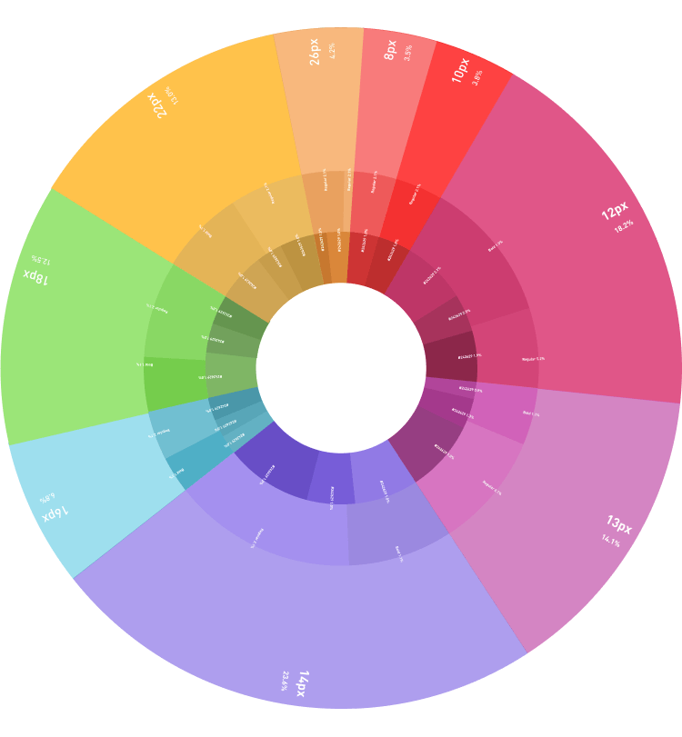 另外文字样式有种七零八落的感觉,把全端文字尺寸集合梳理一下就发现,从 10px 到 22px 的字号几乎全被用过。